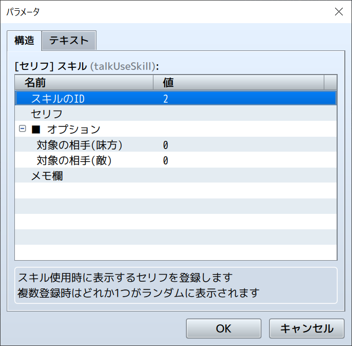 メモ欄のこの記述をすることで、条件を満たす場合のみセリフが有効になります。