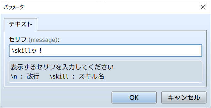 \skill や \item のように記入すると、自動的に使ったスキルやアイテムの名前になります。