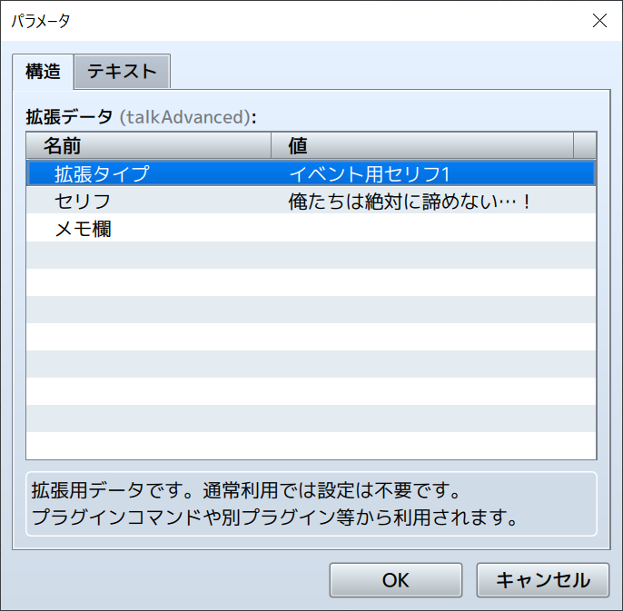 【むずい】セリフを拡張データに登録しておき呼び出す