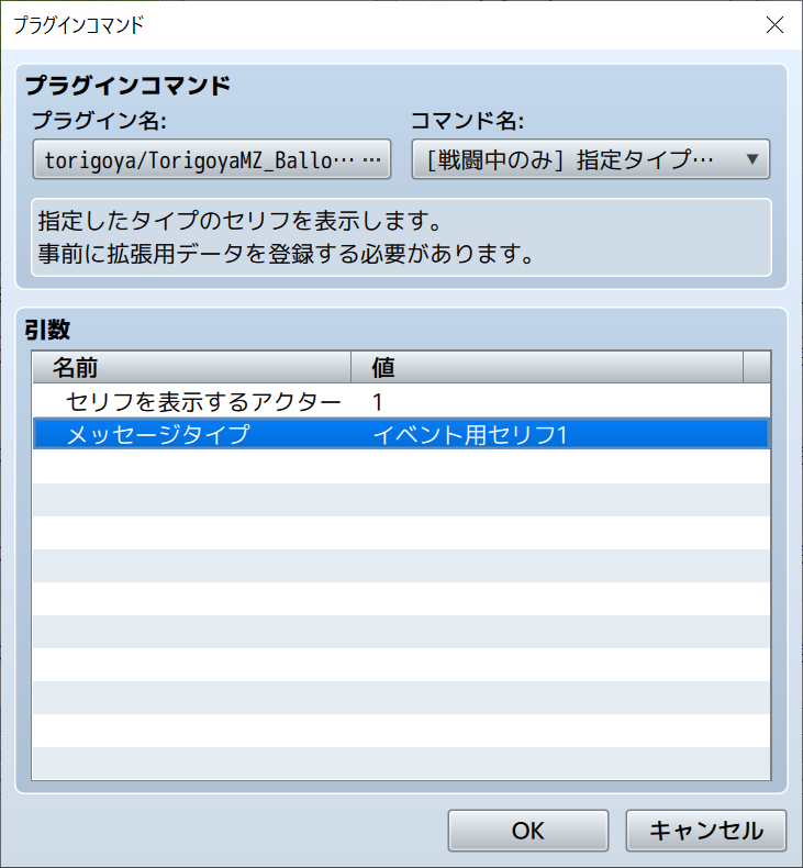 プラグインコマンド側で先程指定した 拡張タイプ を指定します。