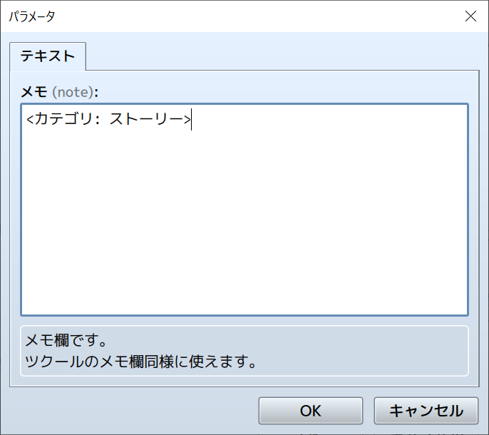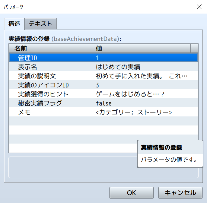 実績プラグインの実績登録設定にある「メモ欄」を使います。