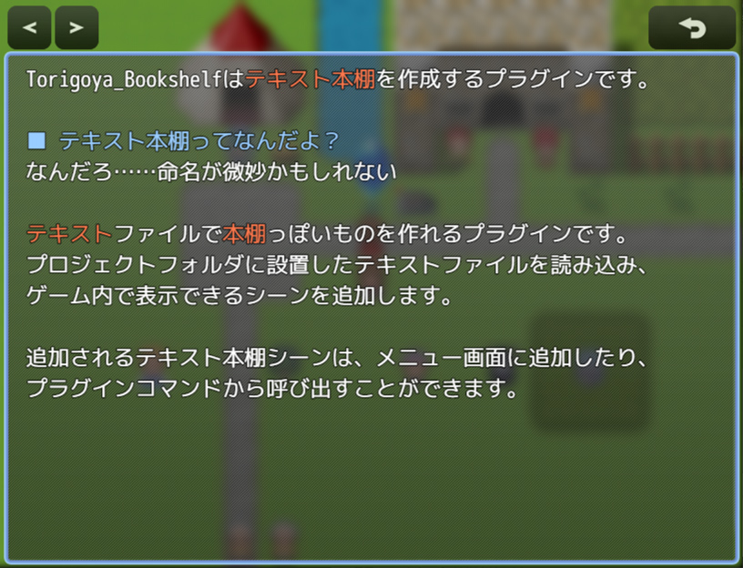 本の中身はイベントの「文章の表示」と同じ記法が使えます。